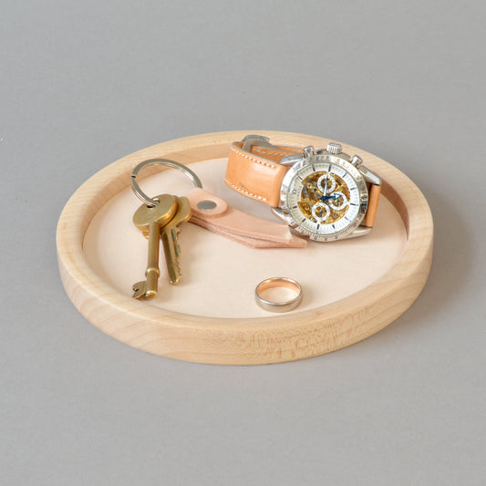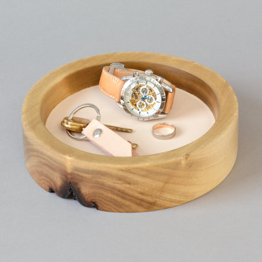 Handcrafted wood and leather catchall trays, a collaboration with Edward de Lacy and Bill Curno