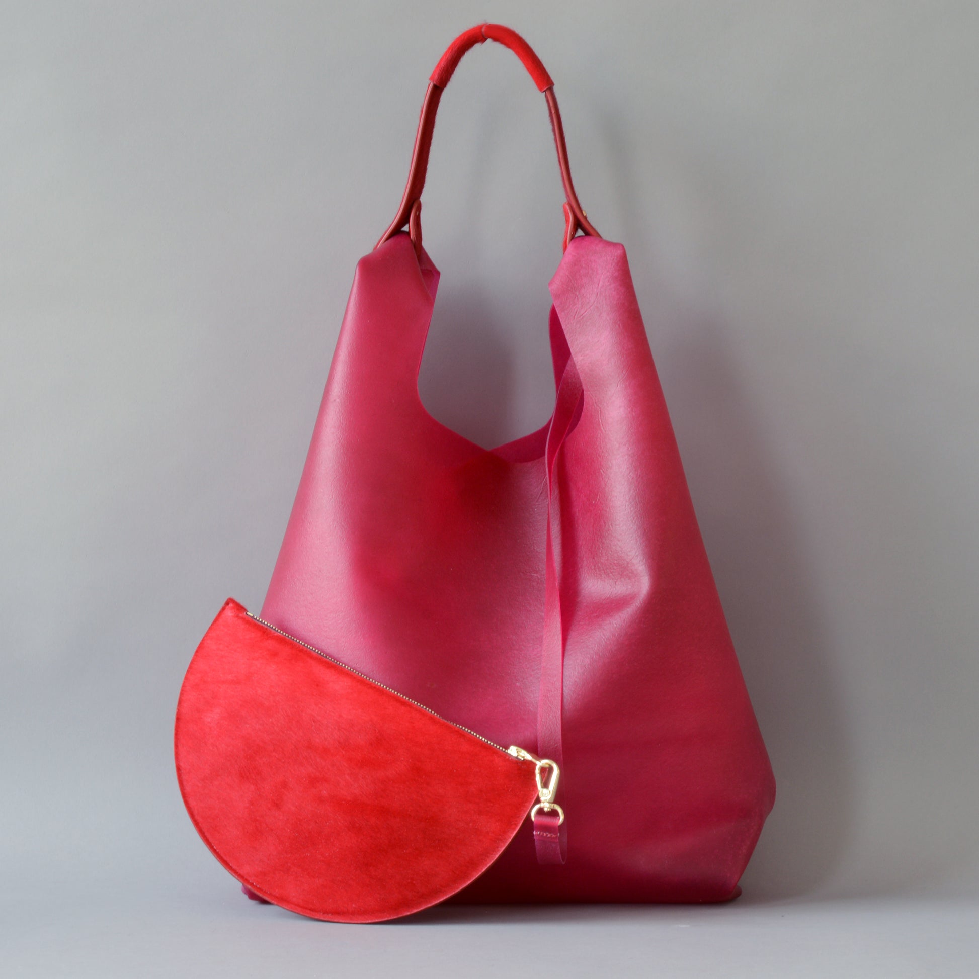 Red leather shopper bag. Designed & crafted by Edward de Lacy.