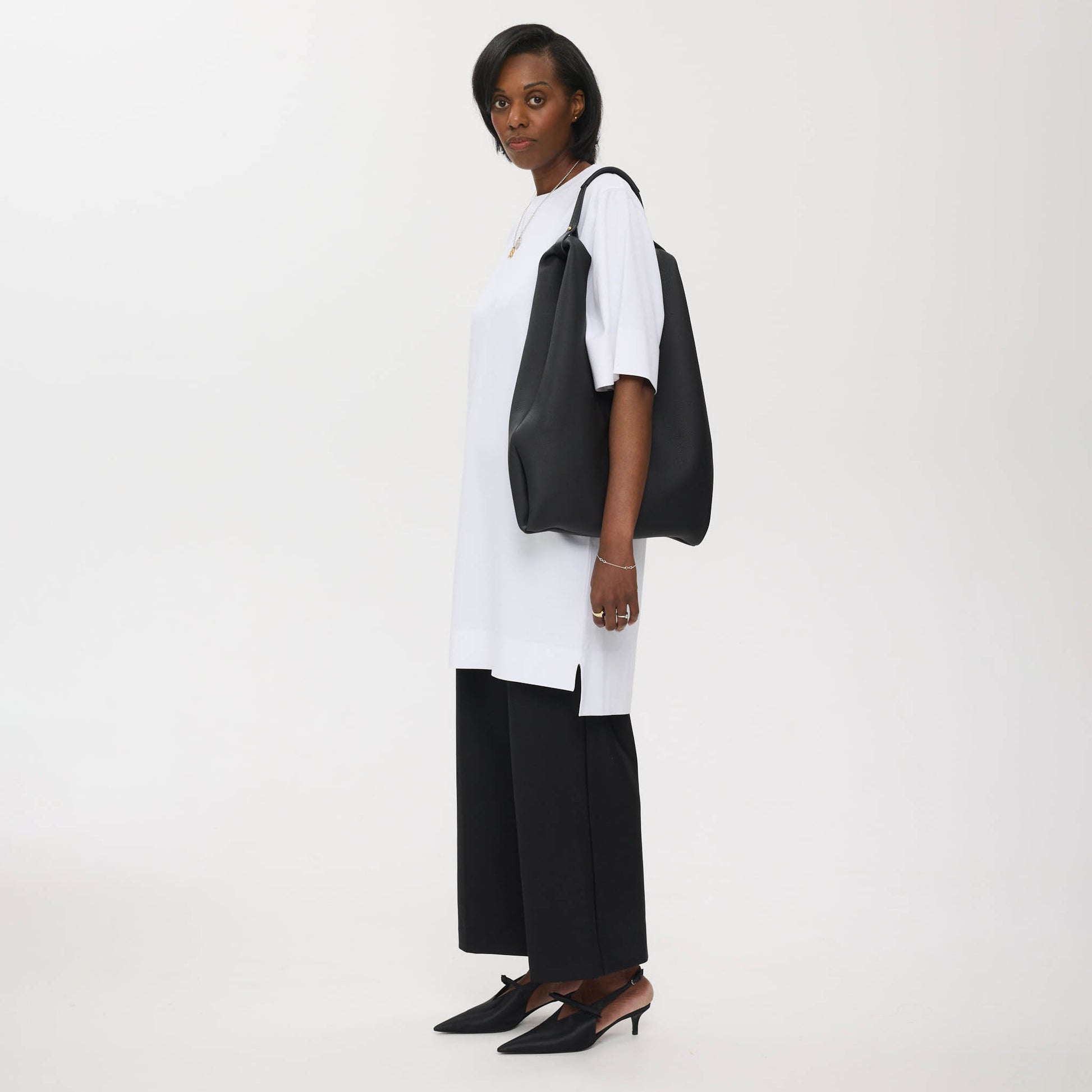 - Detachable silver leather handle shoulder strap.