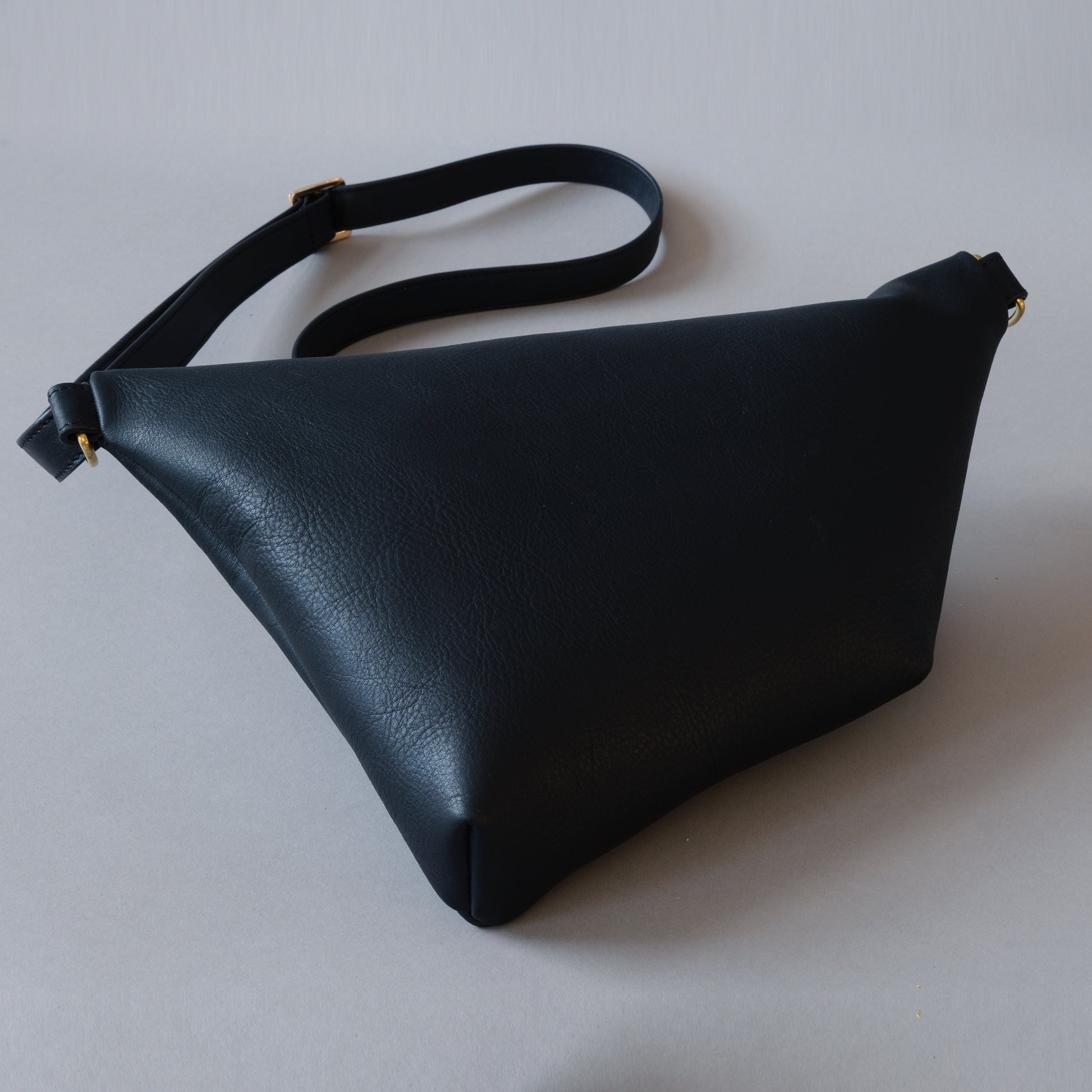 Black leather cross body bag designed and handcrafted by Edward de Lacy.